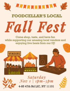 On Friday, November 1st, Foodcellar is hosting our Local Vendor Fall Fest — a lively community event featuring your favorite local brands, live DJ beats, seasonal drink tastings, and plenty of fall flavors to explore.